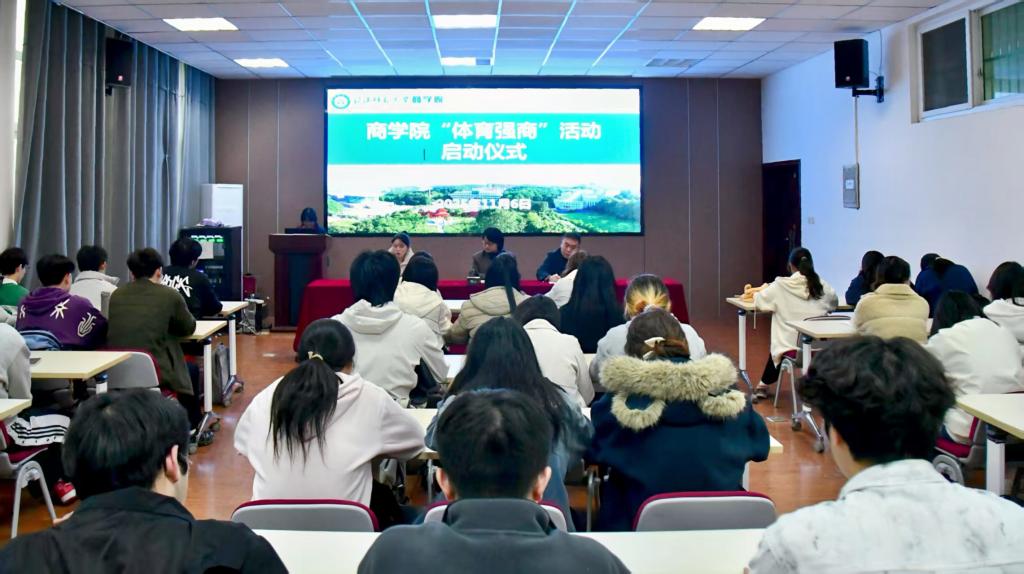 会上,赵振祺详细介绍了“体育强商”系列活动的规划:“体育强商”活动将以11月趣味猫抓老鼠、三人四足,12月校园打卡寻宝、团体跳绳等多元形式展开,让大家在协作与竞技中实现“文武兼修”的成长进阶。同时,她还针对不同班级特色,介绍了校园打卡、撕名牌、拔河、知识寻宝等低门槛、高趣味的活动形式。最后黄钰莹鼓励全体同学在运动中锻炼身体、缓解学业压力、结识挚友,并号召各班班长、文艺委员主动扛起组织责任,做好活动宣传、组织、筹备及反馈工作,让班级凝聚力在运动中升温。